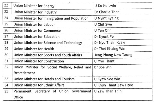 Government of the Republic of the Union Of Myanmar as of 31-01-2025