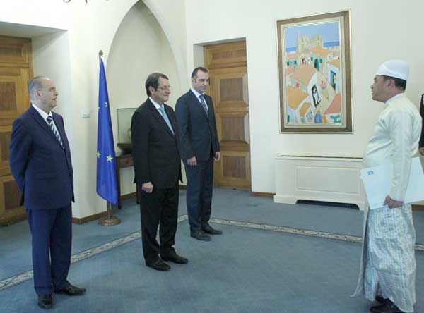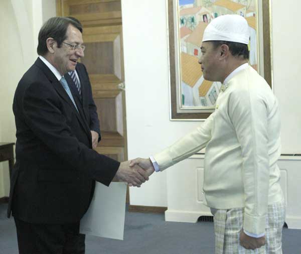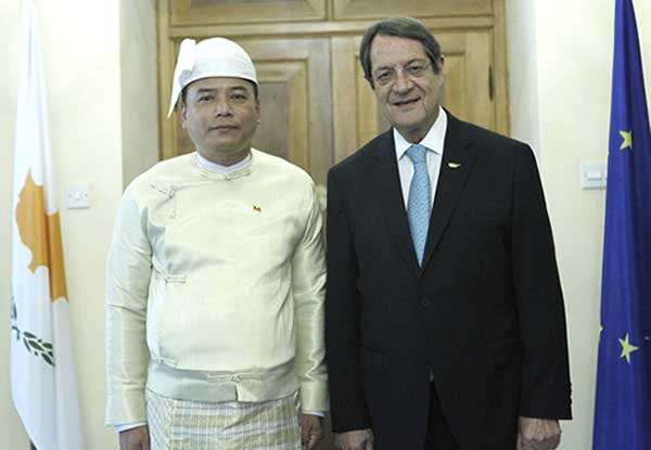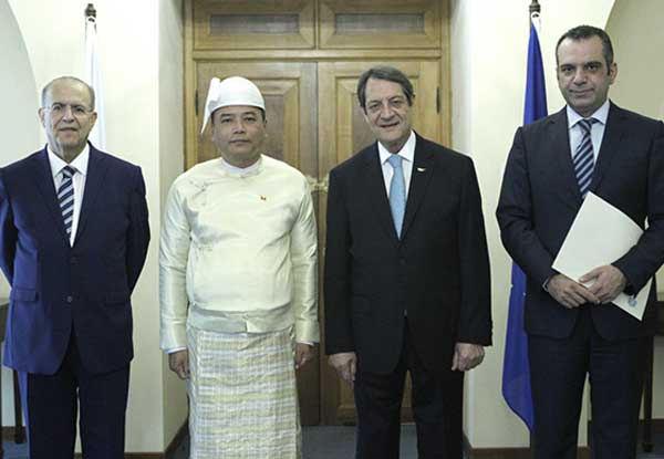 H.E. Dr. Ioannis Kassoulides, Minister of Foreign Affairs of Cyprus, H. E. U Maung Maung Lynn, Ambassador Extraordinary and Plenipotentiary of the Republic of the Union of Myanmar to the Republic of Cyprus, H. E. Mr. Nicos Anastasiades, President of the Republic of Cyprus, Mr. Michalis Sofokleous, Director of the Office of the President