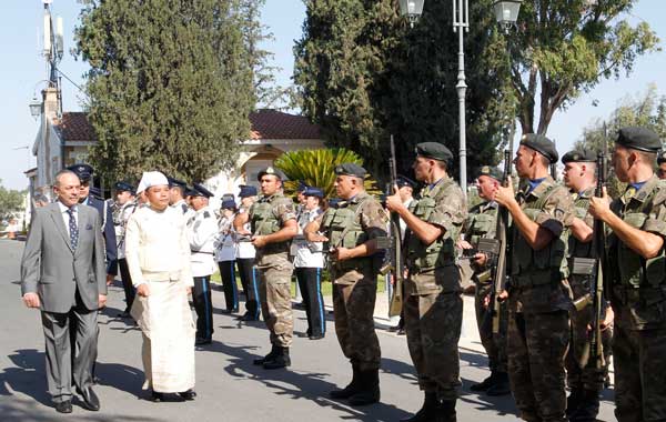 H. E. U Maung Maung Lynn, Ambassador Extraordinary and Plenipotentiary of the Republic of the Union of Myanmar to the Republic of Cyprus, inspecting the Guard of Honour at the Presidential Palace in Nicosia on 13 July 2017 during the Ceremony of the Presentation of the Credentials.
